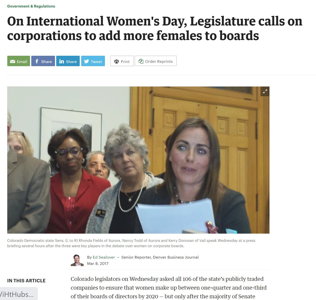Here is a link to the Denver Post article “Increase in women on boards stalls on February 26, 2023.